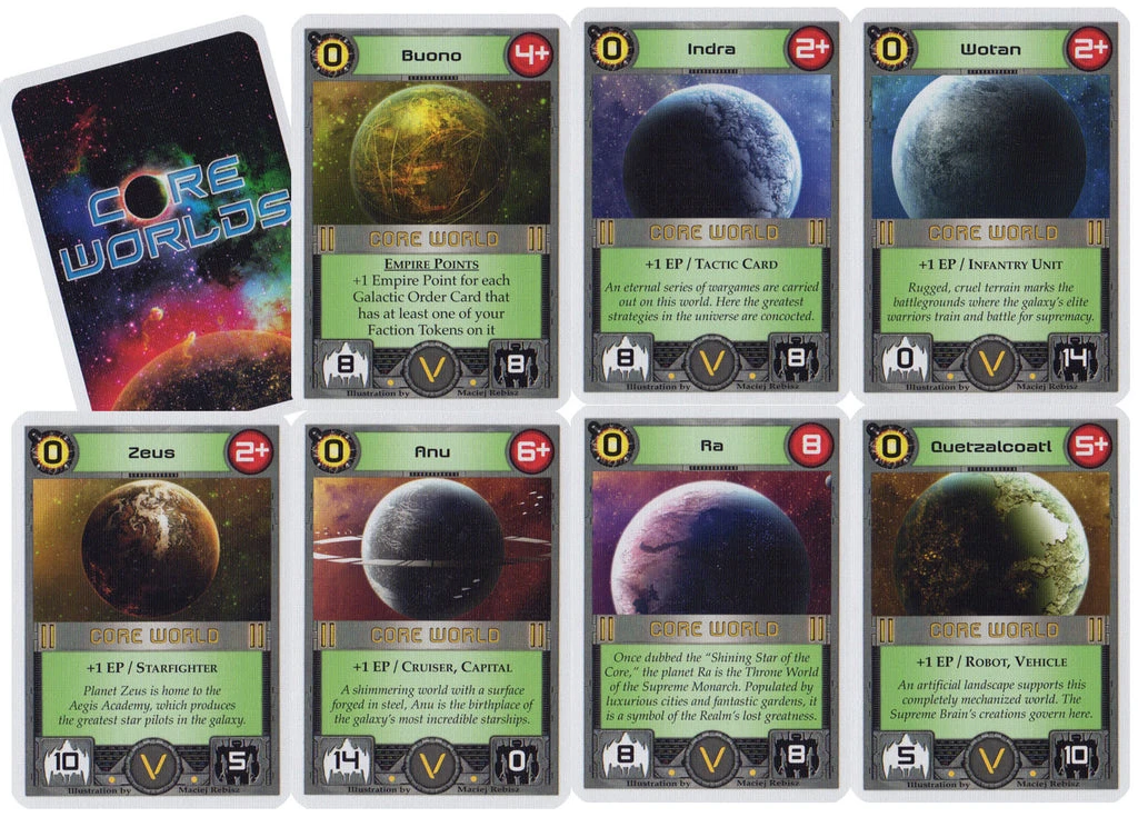 Core Worlds: Galactic Orders Promo Pack consists of 7 cards, including Buono (a new Core World) and reprints of the original 6 Core Worlds with added flavor text.