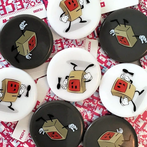The pieces are made of a hard plastic, similar to Bakelite, and the graphics are applied via a 4-color heat transfer process, which fuses the images to the plastic in a way that makes them very scratch resistant, meaning they should last a lifetime.
