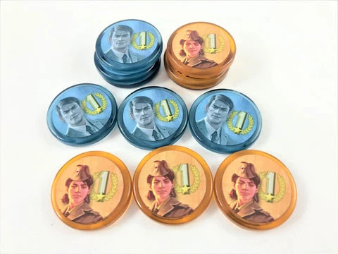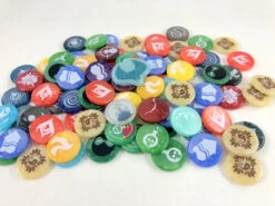 This GeekUp set includes all 80 characters tokens (24mm diameter) with the original artwork from the game and are made from transparent plastic:
