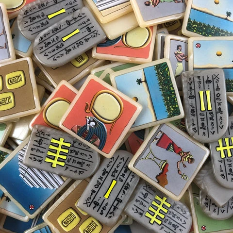Reiner Knizia is one of the most well-known game designers in the world, and his classic auction game Ra has been in print continually for over 12 years. Celebrate this classic game with this exquisite set of GeekUp tiles and VP tokens, as well as a custom drawbag featuring artwork from the game. Please note --> this GeekUp set uses the original artwork by Franz Vohwinkel, found in every printing of the game EXCEPT for the most recent (by Windrider Games).