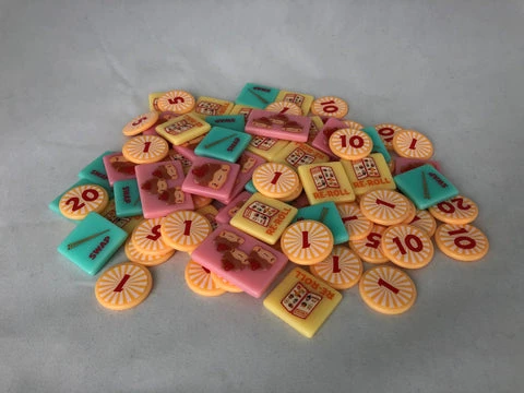 - 40 point chips (18 ones, 7 fivers, 10 tens, and 5 twenties)