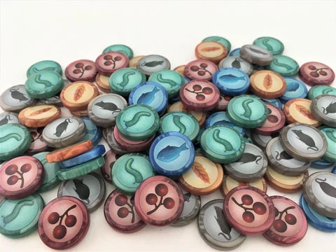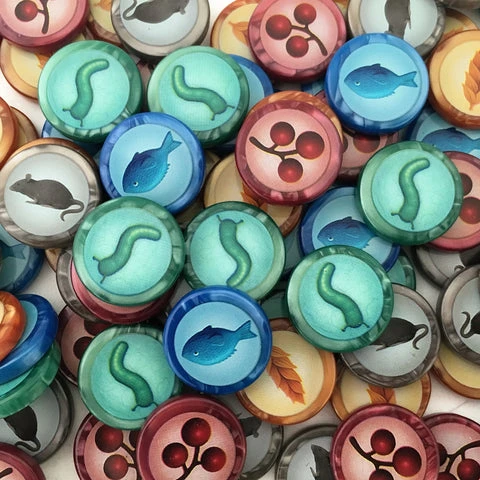 Capture the attention of both players and birds alike with these luxurious upgrade bits for the food tokens in the game Wingspan.