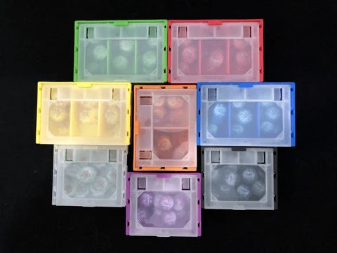 - 3-Compartment Box (red, yellow, green, and blue) = 90mm wide x 65mm deep x 39mm tall
