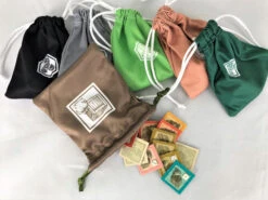 The larger 13 cm x 16 cm size is perfect for those games where you need to random draw from a larger set of tiles (it’s the size we used for our Great Western Trail bag set).