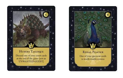 Who doesn’t love beasts? The mini expansion Monarch: Hungry Tarasque and Regal Peacock adds two new beasts to be shuffled into the Monarch deck: the Hungry Tarasque and Regal Peacock.