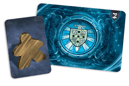 This object was introduced to celebrate the release of Mysterium: Hidden Signs. It features a wooden, untreated meeple in the weapon category (choke hazard). The cards are designated P4.