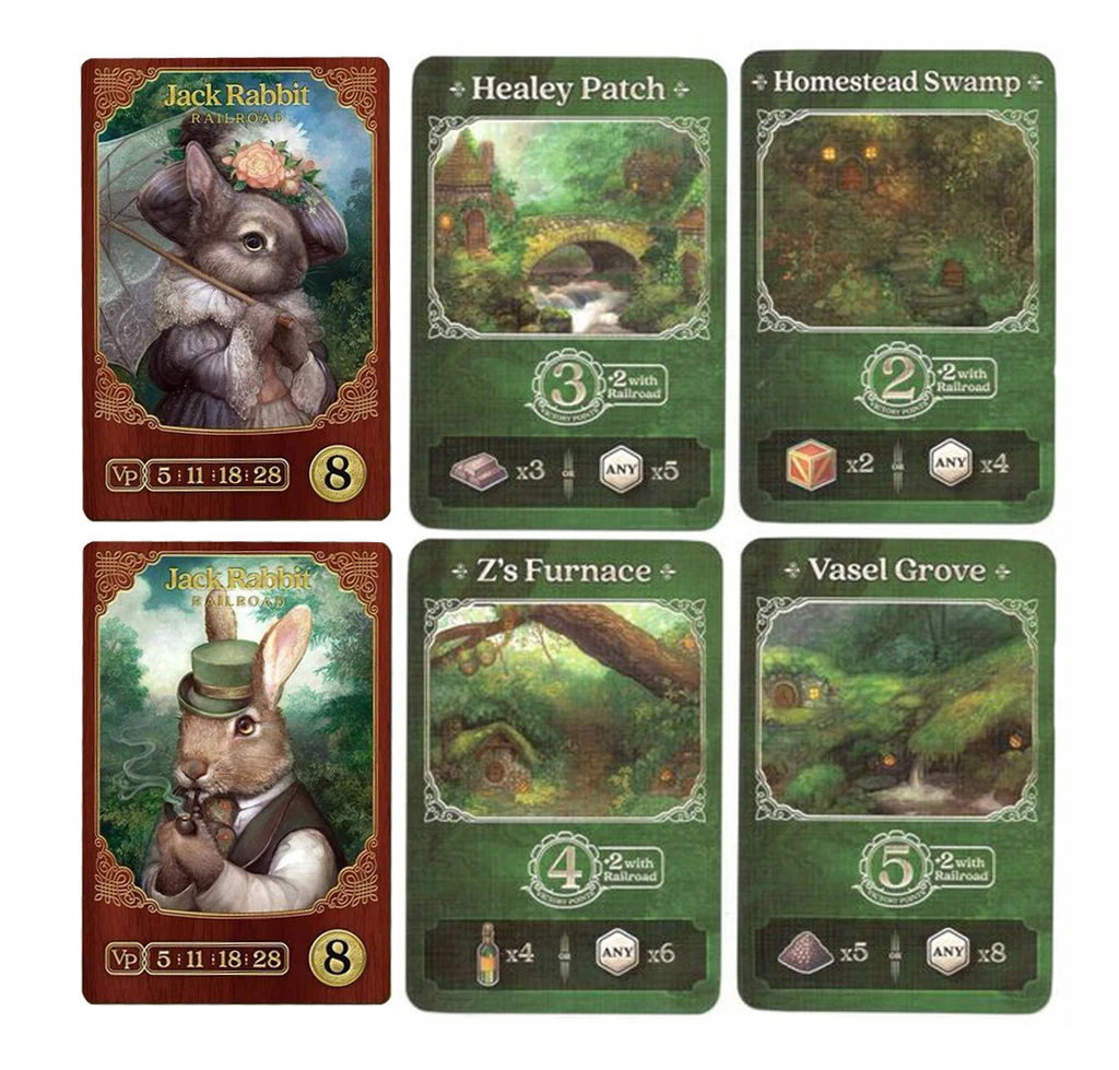 Includes 4 railroad cards (VP= 5:11:18:28) Minimum Price=8