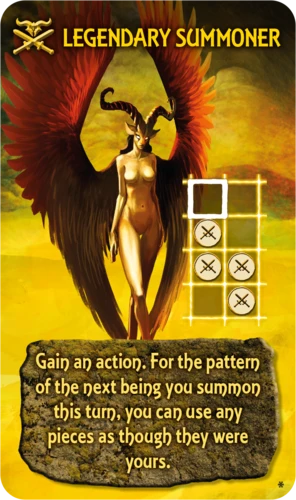 “Just shuffle the “Legendary Summoner” in with the other legend cards. This legendary’s effect allows you to use all players’ pieces for the pattern of the next being you summon this turn.”