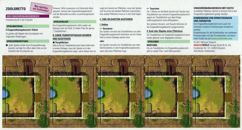5 new area tiles for Zooloretto. (Rules in German & English)